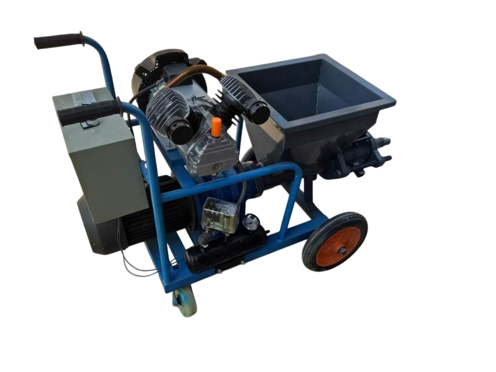 The Cement Mortar Sprayer is a high-pressure, efficient solution for spraying cement mortar, ideal for construction, civil engineering, and decorative projects. This machine mixes cement with water and foaming agents to create a fine, uniform foam that is then blended with the cement slurry and sprayed directly onto the construction surface. It is designed to improve construction efficiency, reduce labor, and ensure consistent, high-quality wall and surface finishes.