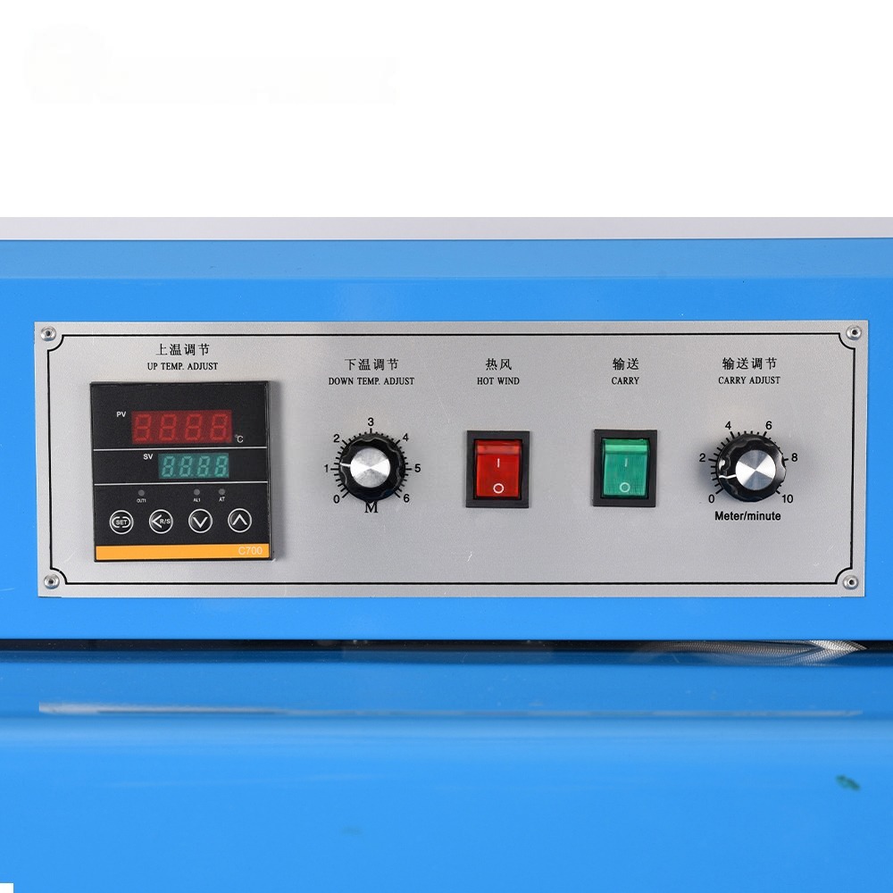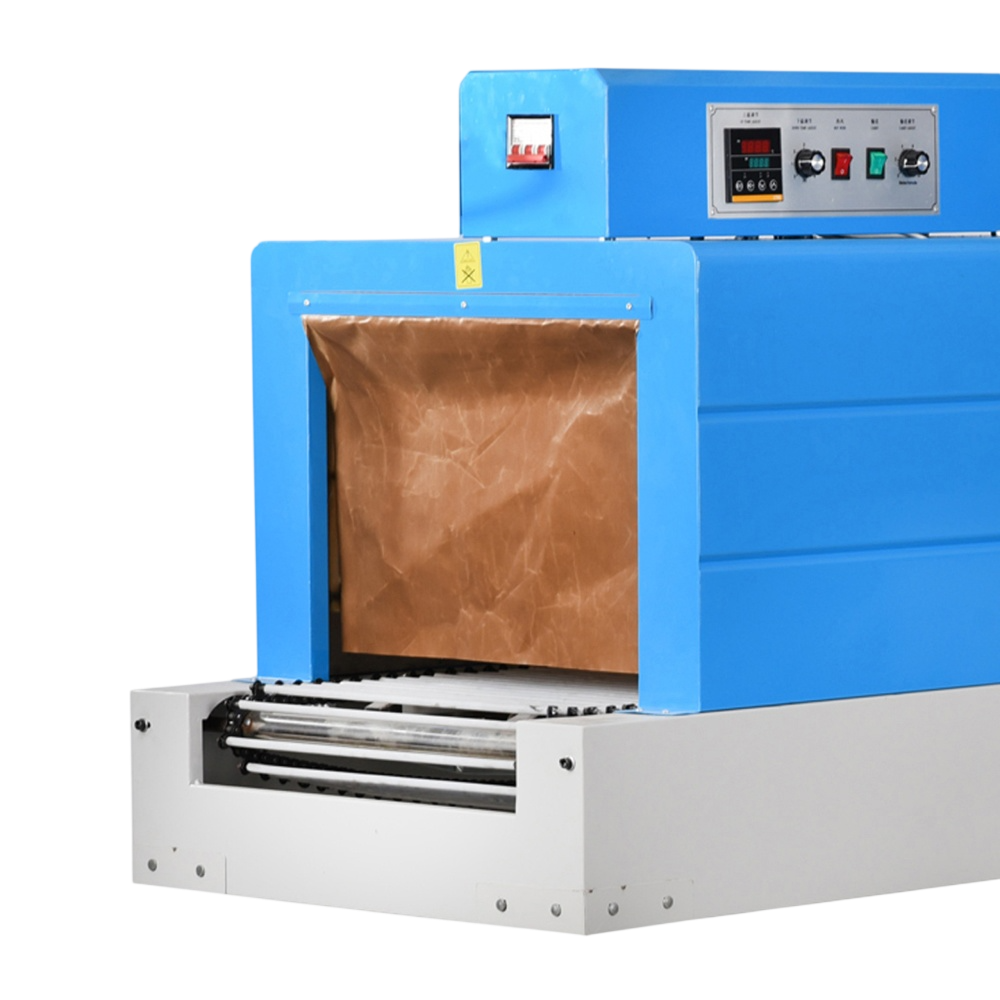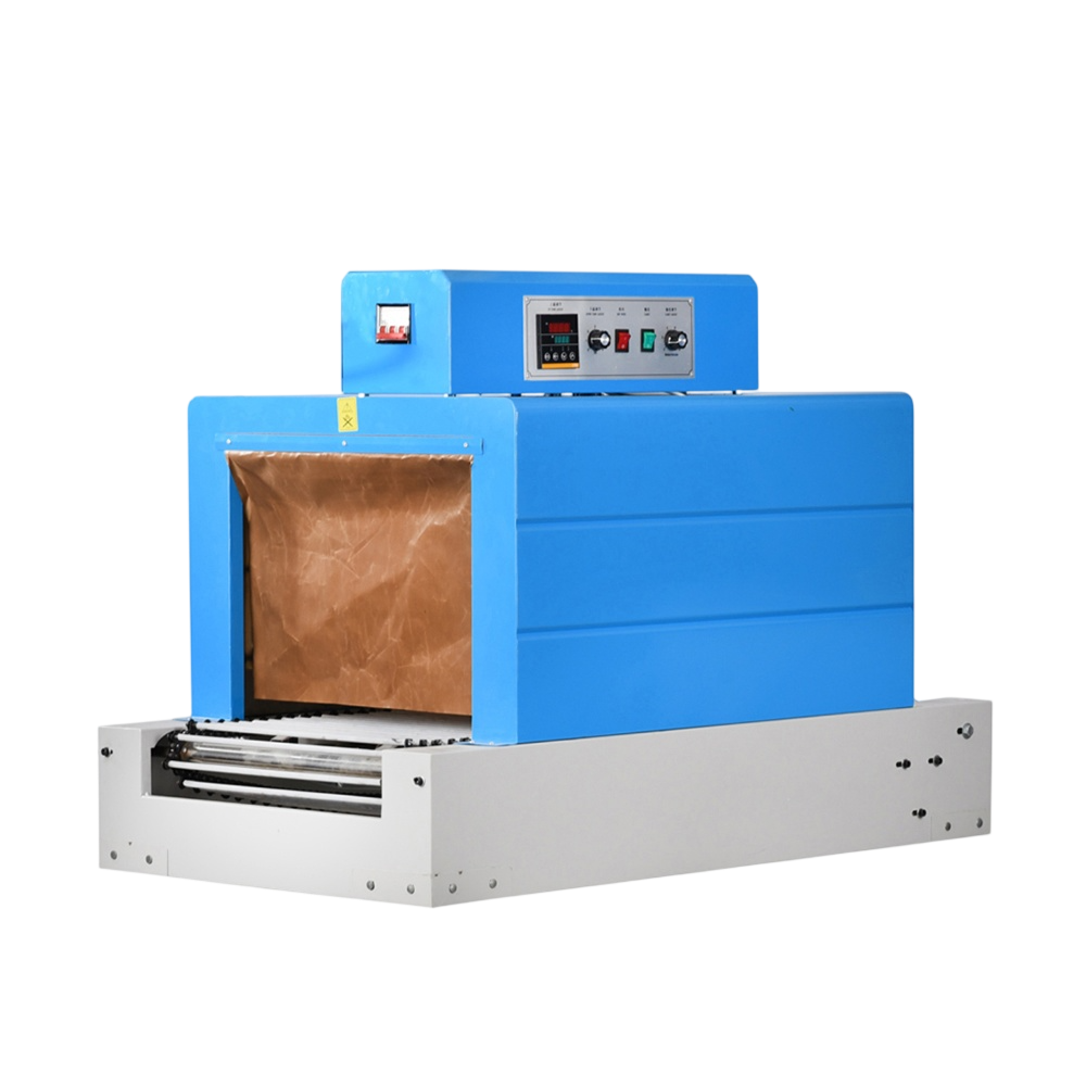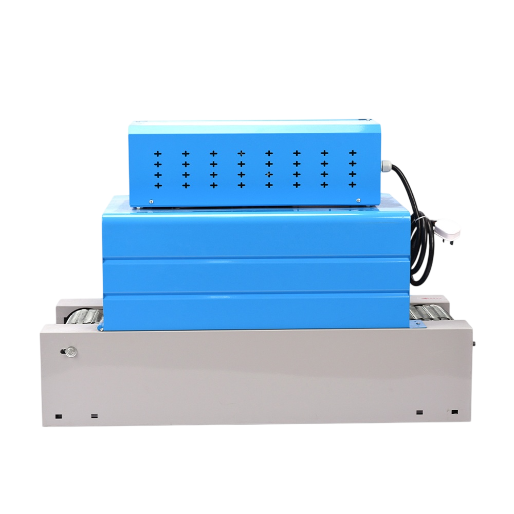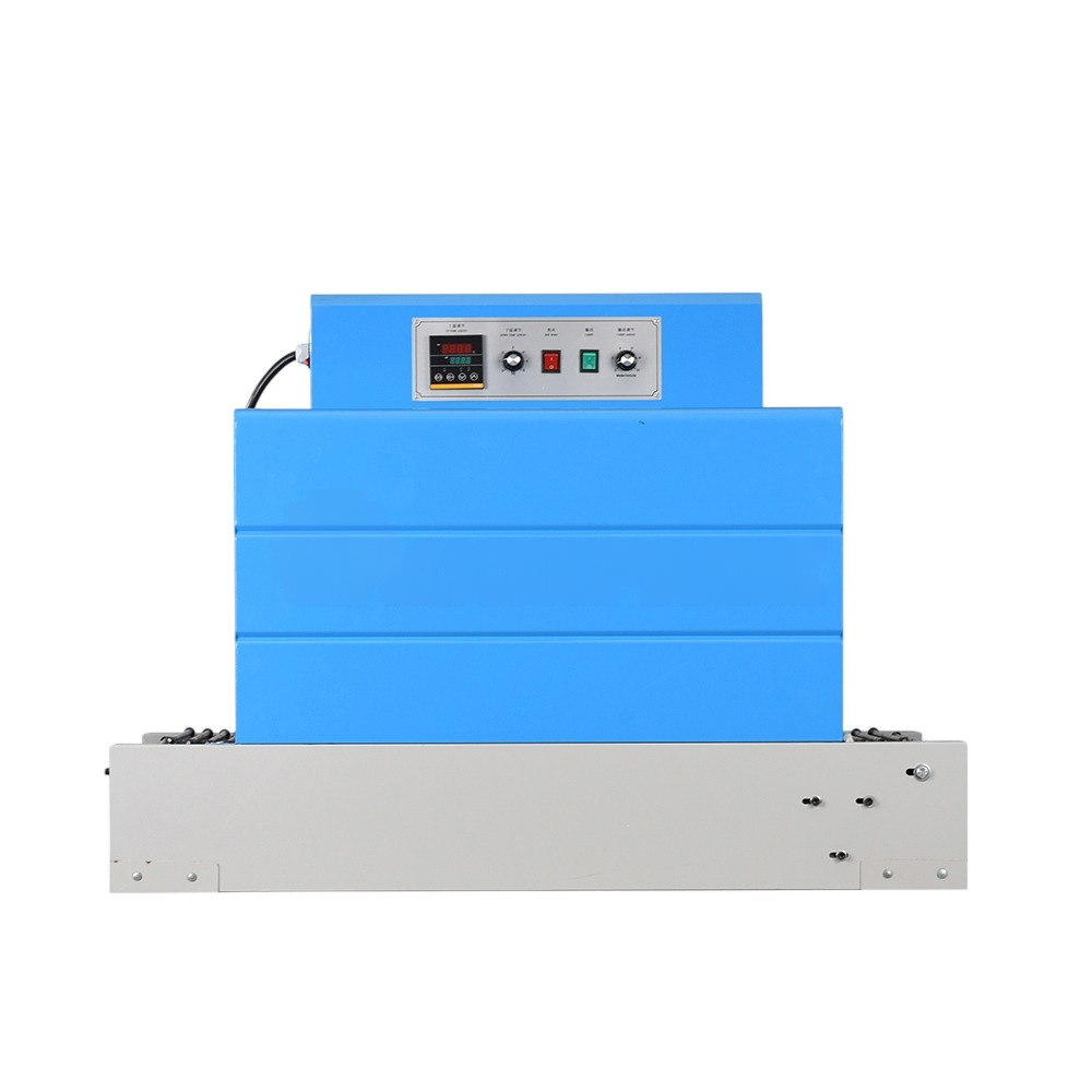 Built for small to medium production environments, this machine is equipped with a powerful heating system and a stable mesh conveyor that allows products to move smoothly through the shrinking chamber. The use of quartz tube heating combined with a built-in air circulation fan ensures even heat distribution, resulting in uniform film shrinkage without wrinkles or damage.